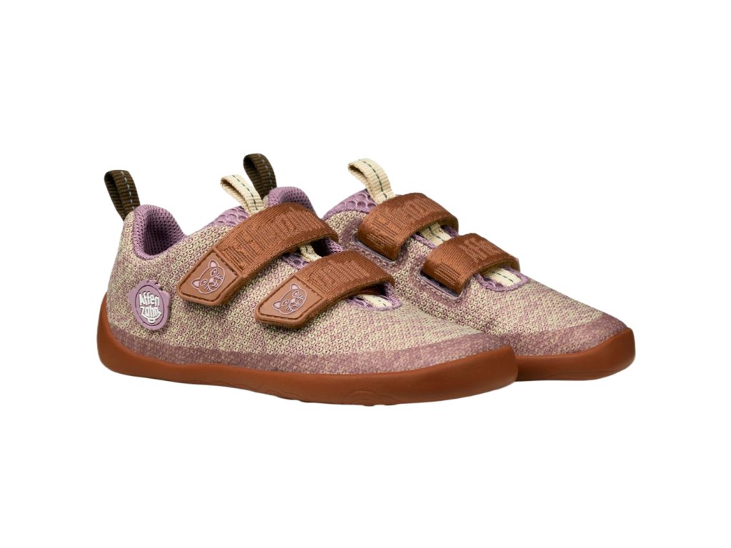 Dětské úpletové barefoot boty ergonomického tvaru - veganské. Díky tenké, ohebné a neklouzavé podrážce umožňují přirozenou dynamiku chůze a postupné odvalování chodidla. Boty jsou vyrobeny z polyesterového vlákna a zapínají se pomocí suchých zipů, takže děti nebudou mít s obouvání žádný problém.