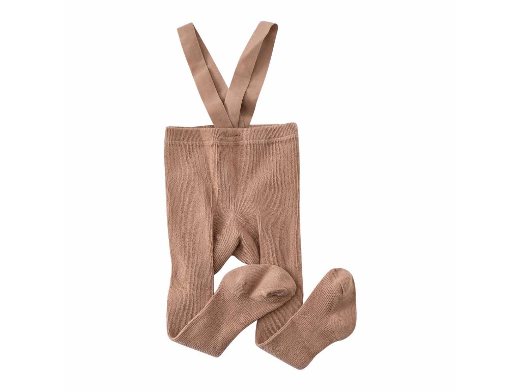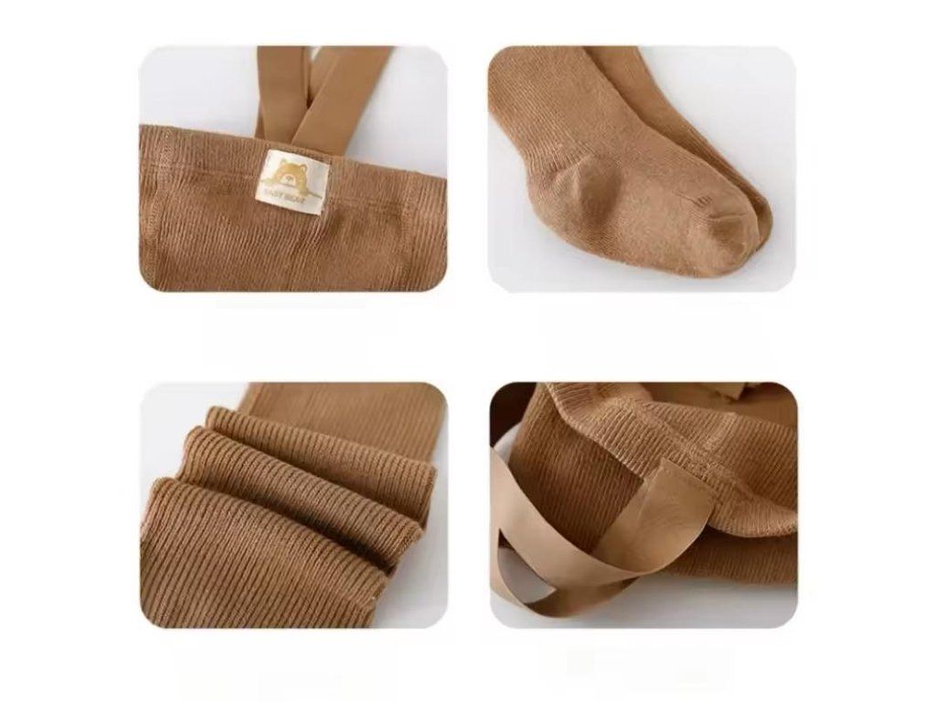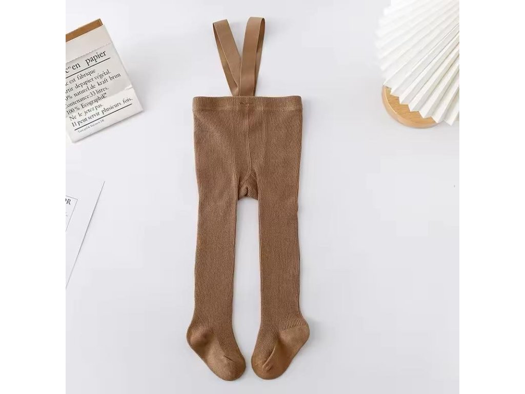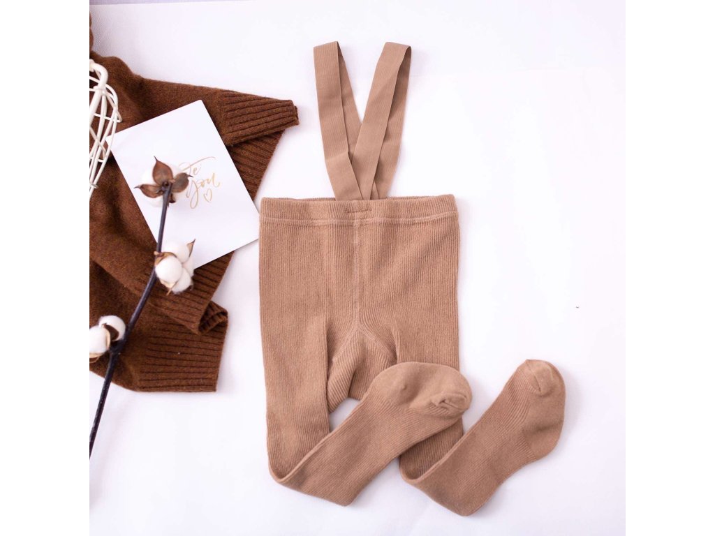 Bavlněné punčocháče s vyšším pasem a kšandami - Hnědé
