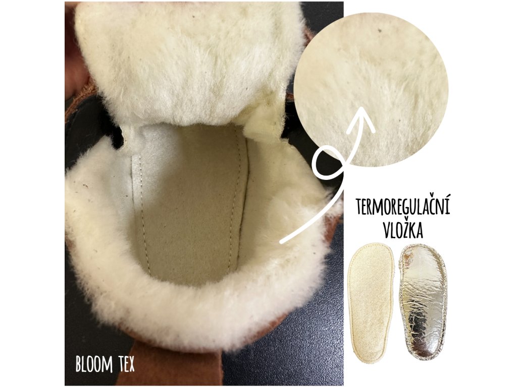 Zimní barefoot botičky s TEX membránou a vlněným kožíškem pro normální nožičky