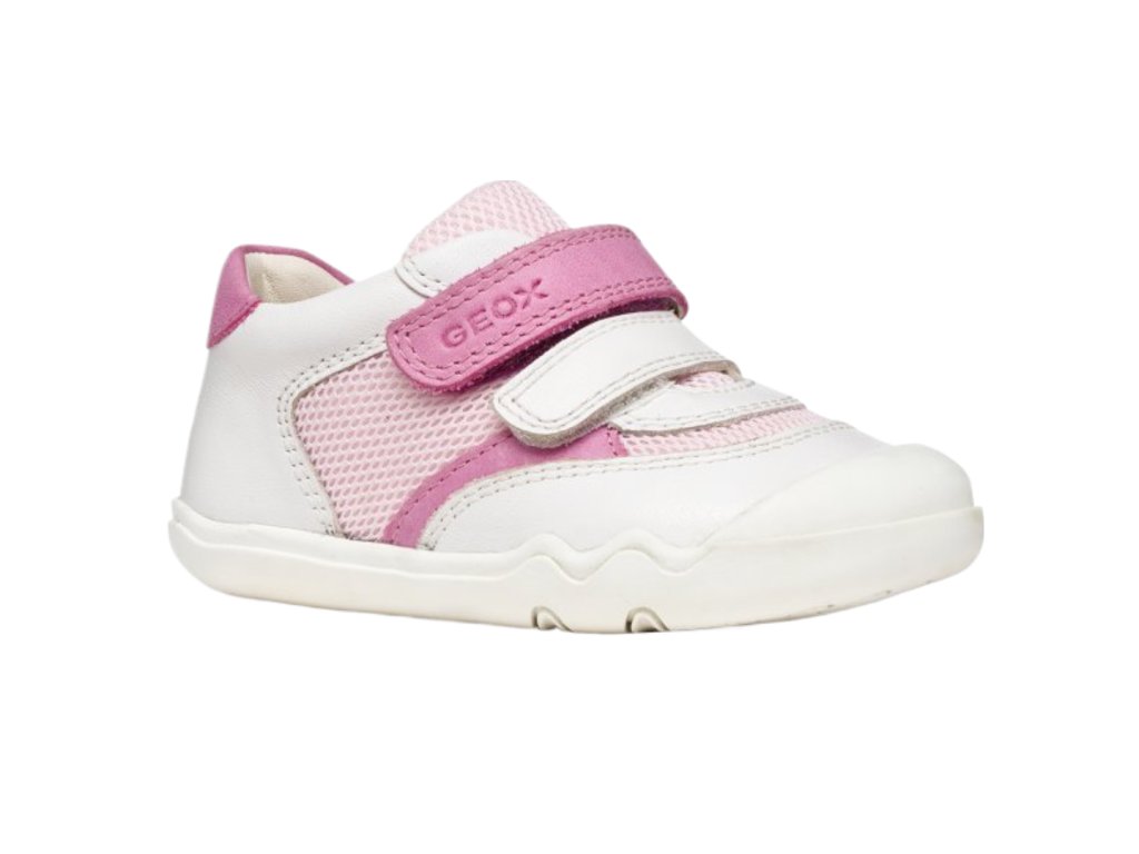 Celoroční kožené barefoot tenisky Geox B Steppieup - White/Pink