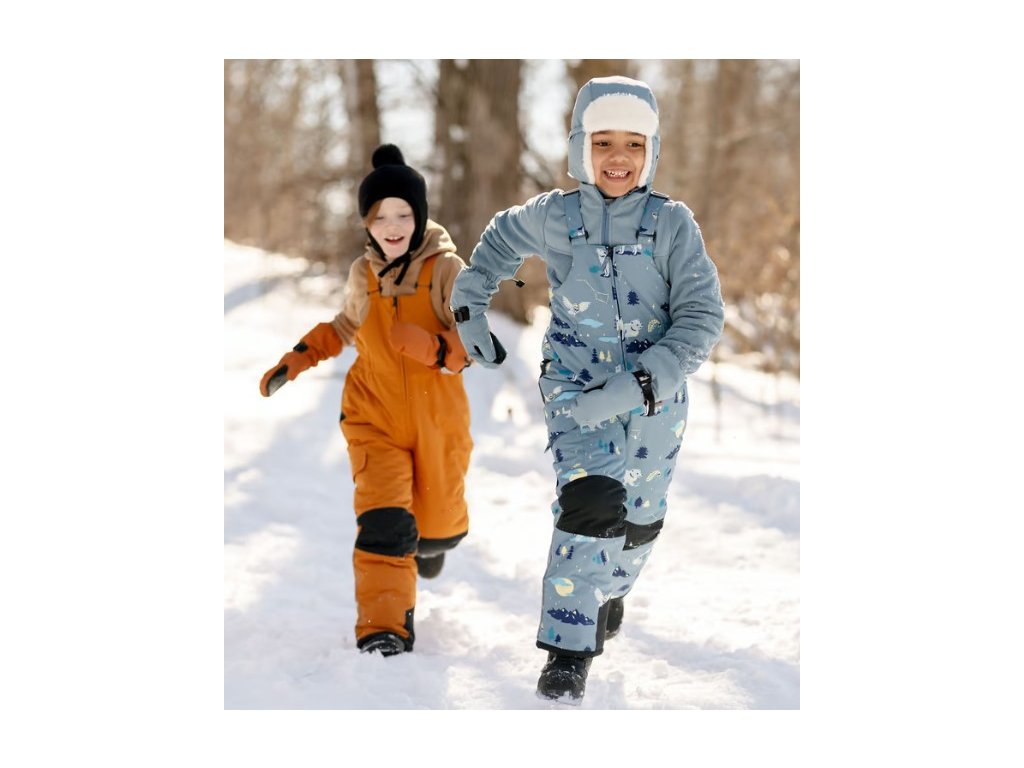 Vyrobené ze 100% recyklovaného polyesteru a navrženy tak, aby udržely vaše děti v teple a suchu. Promyšleně navržené pro snadné oblékání a s nastavitelnými popruhy, elastickým pasem a zapínáním na jeden zip.