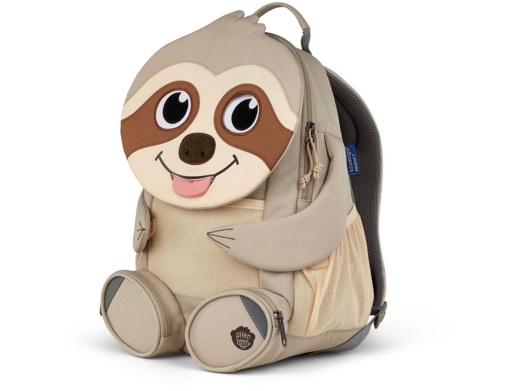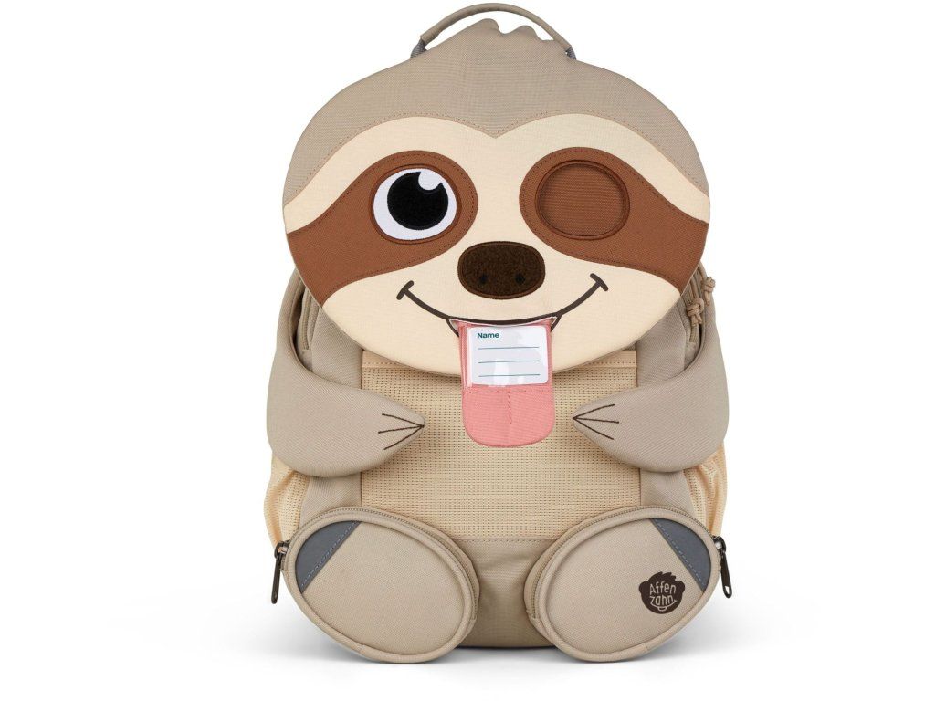 Dětský batoh do školky Affenzahn Large Friend - Sloth má podobu roztomilého lenochoda, který po vytažení jazyka se jmenovkou také rošťácky mrkne.