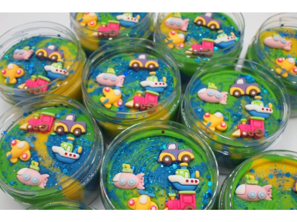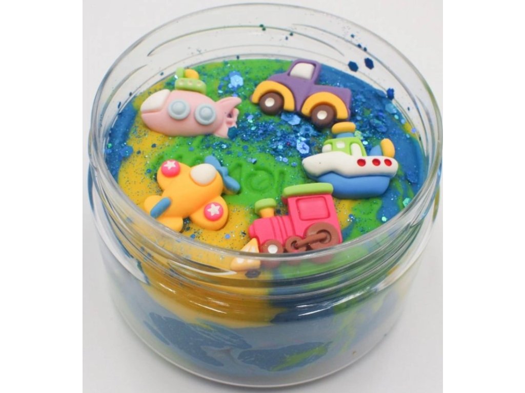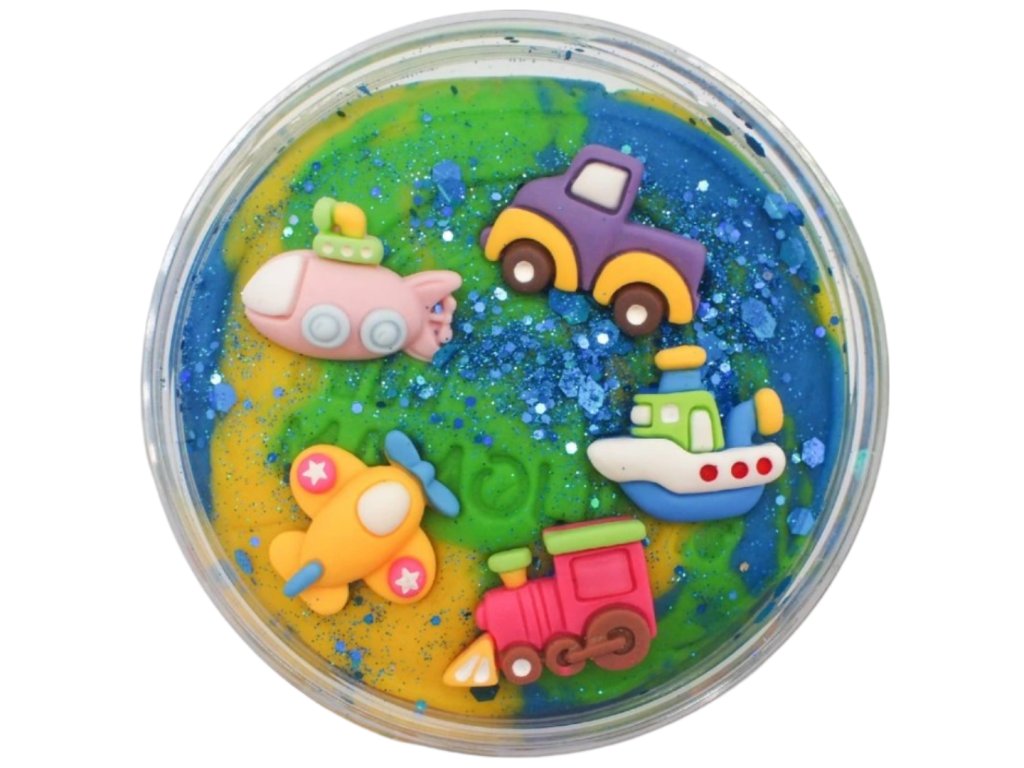 Tříbarevná domácí modelína 250g, třpytky, dekorace dopravní prostředky 5ks.