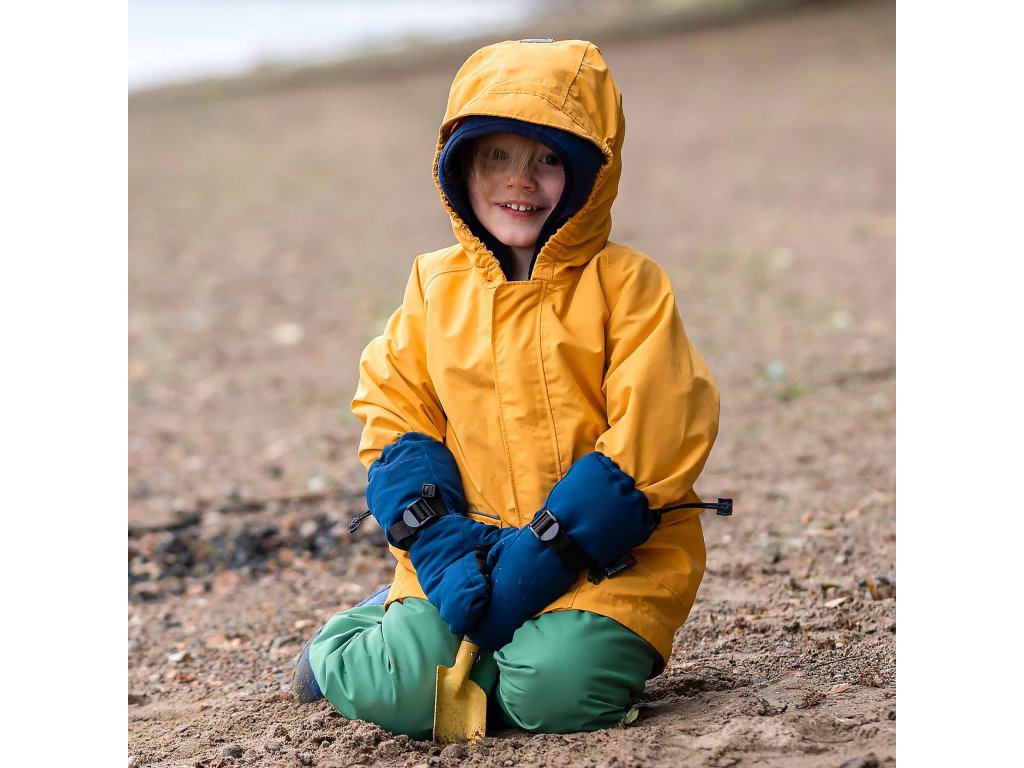 Tento pár zimních palčáků je podšitý měkkým a příjemným fleecem a materiálem Thinsulate, který udrží malé ruce v teple a pohodlí v chladných dnech. Kromě toho jsou tyto palčáky navrženy z nepromokavého materiálu s voděodolnou vnitřní membránou, takže jsou plně voděodolné. Tyto palčáky se ve spodní části široce rozevírají, aby se snadno přizpůsobily rukávům bundy, a poté se zapínají. Kromě toho mají kolem zápěstí druhý zip pro bezpečnější upevnění na ruce. Texturovaný, odolný materiál na dlani a palci těchto rukavic zajišťuje lepší schopnost uchopení.