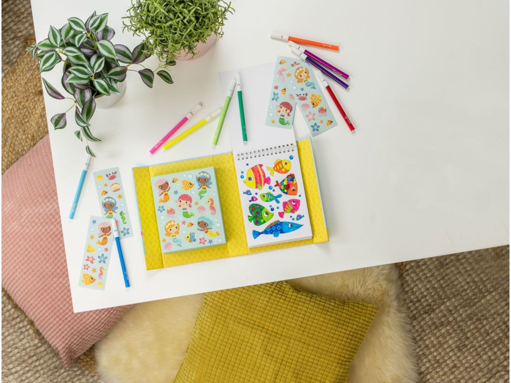 Omalovánky plné veselých postaviček z mořského světa. Dokončenou kresbu navíc můžete dozdobit přiloženými samolepkami. Tyto prémiové sady jsou navrženy pro přenosné hraní bez nepořádku.