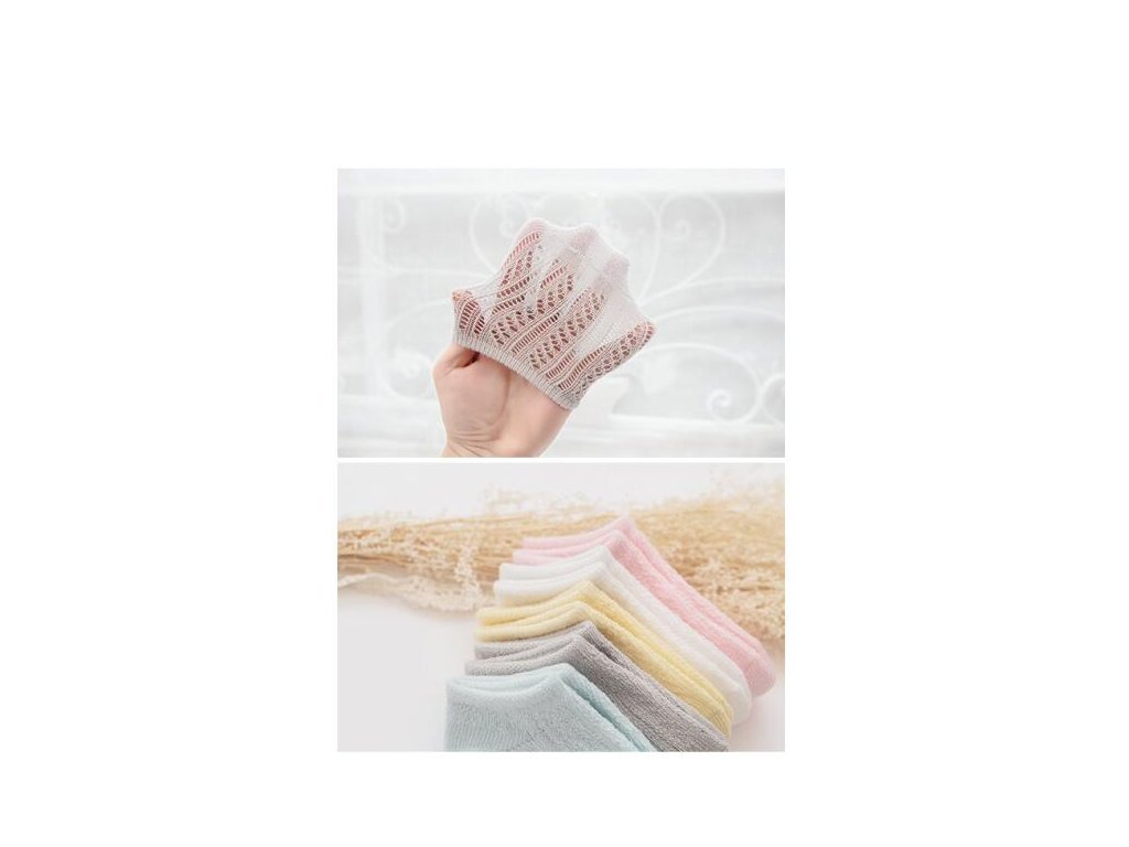 Lehoučké prodyšné ponožky se zdobením a protiskluzem.