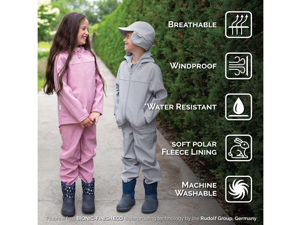 Softshellové kalhoty jsou vyrobeny se čtyřmi vrstvami ochrany proti chladu a dešti. Technologie Bionic-Finish® Eco DWR odpuzuje vítr, vodu a nečistoty, je zesílena větruodolnou tkaninou s vysokou hustotou a nepromokavou TPU membránou. Vnitřní vrstva z měkkého fleecu udrží vaše děti v teple. Naše větruodolná a vodoodpudivá technologie neobsahuje škodlivé chemikálie, jako je fluor a PVC, takže si můžete být jisti, že je pro vaše děti bezpečná!