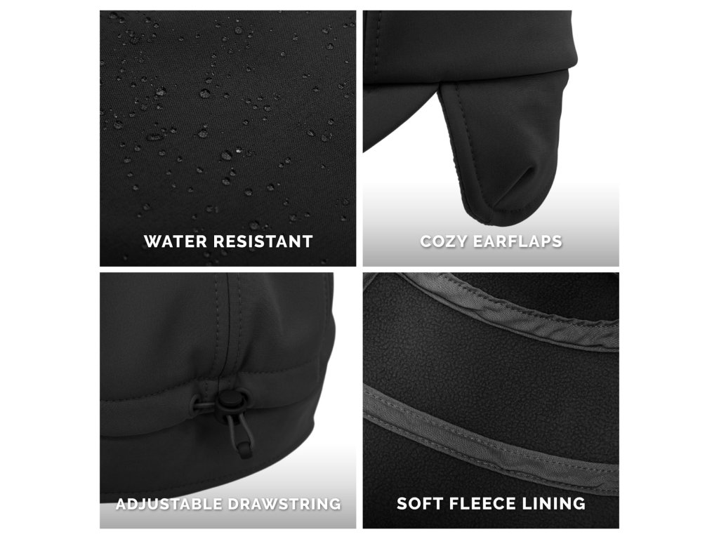 Pečlivě navržená tak, aby hlava zůstala suchá i v mírném dešti a větru s voděodolnou tkaninou podšitou příjemným fleecem.