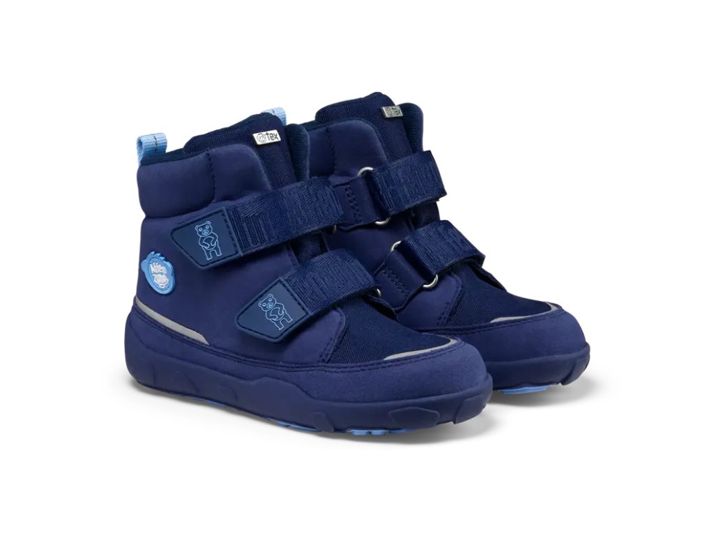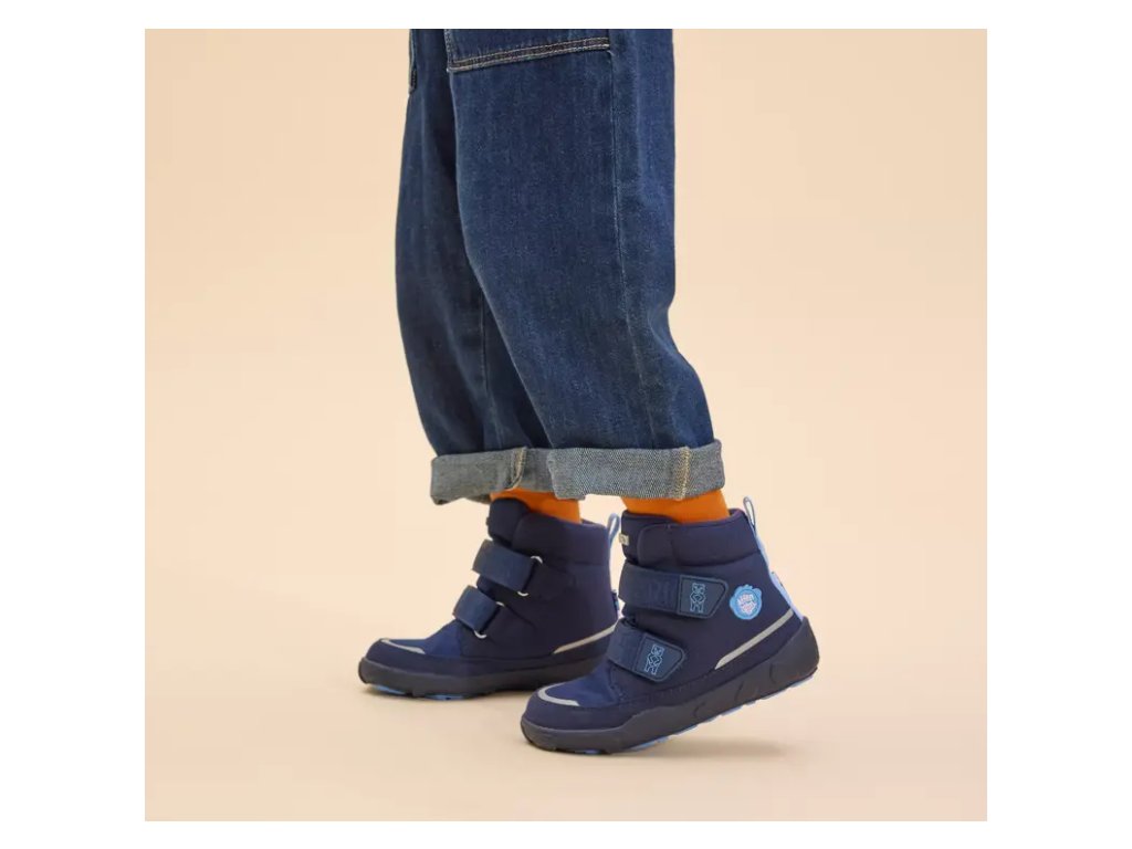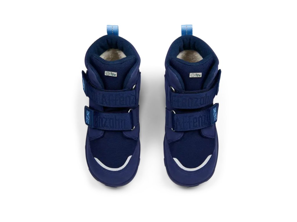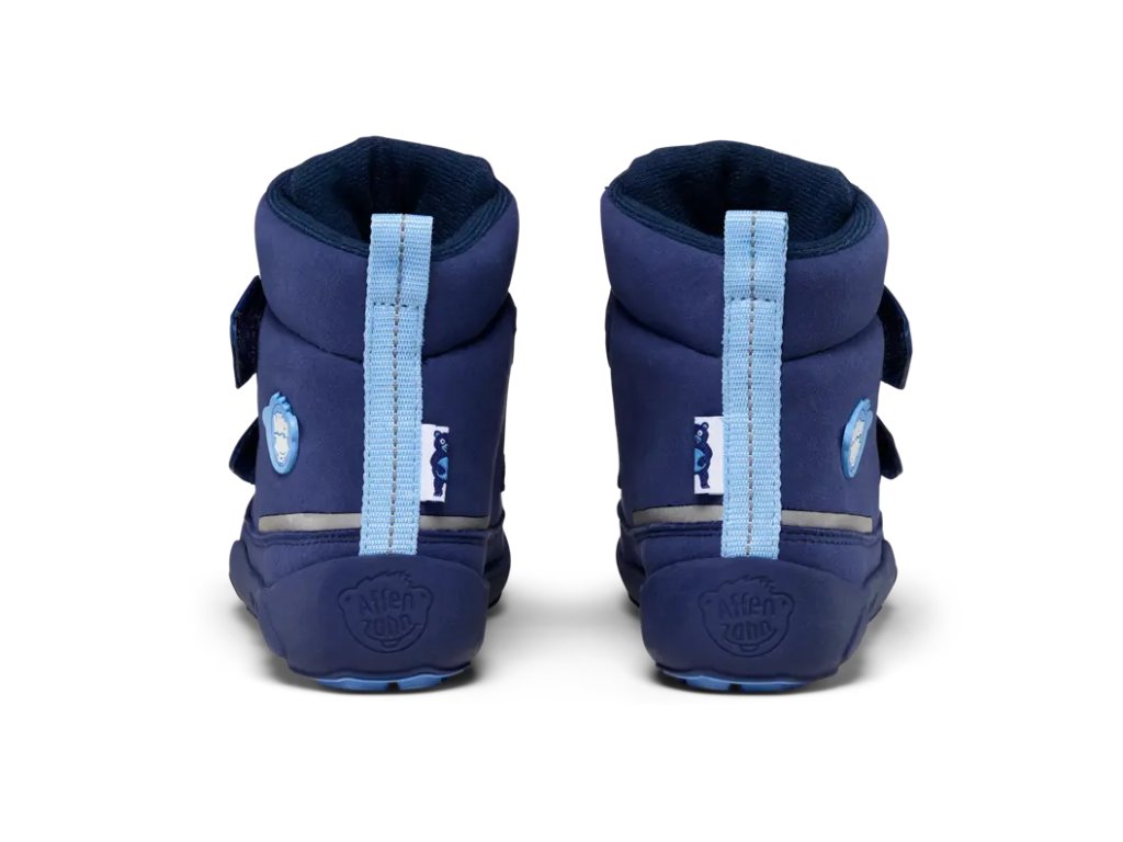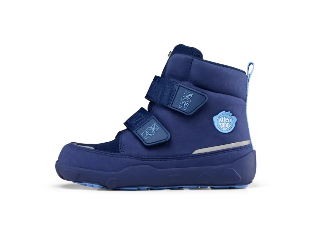 Dětské zimní barefoot botičky na suchý zip, jsou ergonomického tvaru s tenkou neklouzavou podrážkou, voděodolnou a prodyšnou membránou Affentex a reflexními prvky.