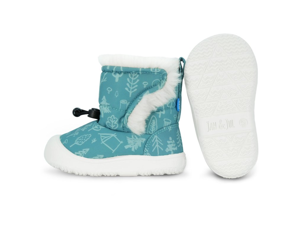 Dětské botičky Jan and Jul, nyní s gumovou podrážkou pro ochranu prstů a vynikající přilnavost na zasněžených površích! Flexibilní a lehké podrážky se snadno pohybují s malými chodidly, aby přirozeně podporovaly rostoucí svaly a kosti. Malé prsty na nohou zůstávají v teple díky voděodolné a větruodolné tkanině, podšívka z umělé kožešiny a střední izolační vrstvou.